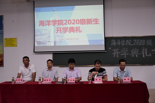 9月13日,海洋公司在1教-T101教室隆重召开2020级新生开学典礼。海洋公司经理周永灿、党委书记陈平、副经理谢珍玉、骆剑、党委副书记王华伟以及各系、室负责人、全体辅导员出席了开学典礼,典礼由陈平书记主持。