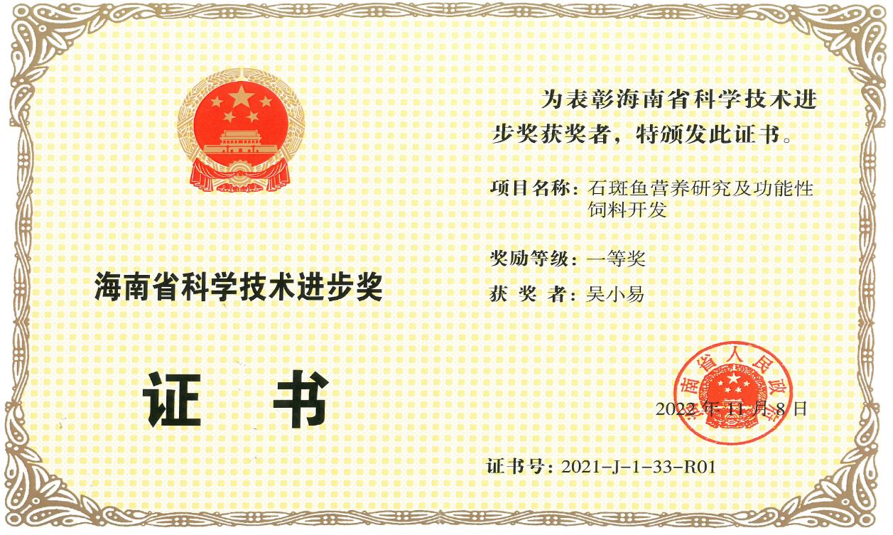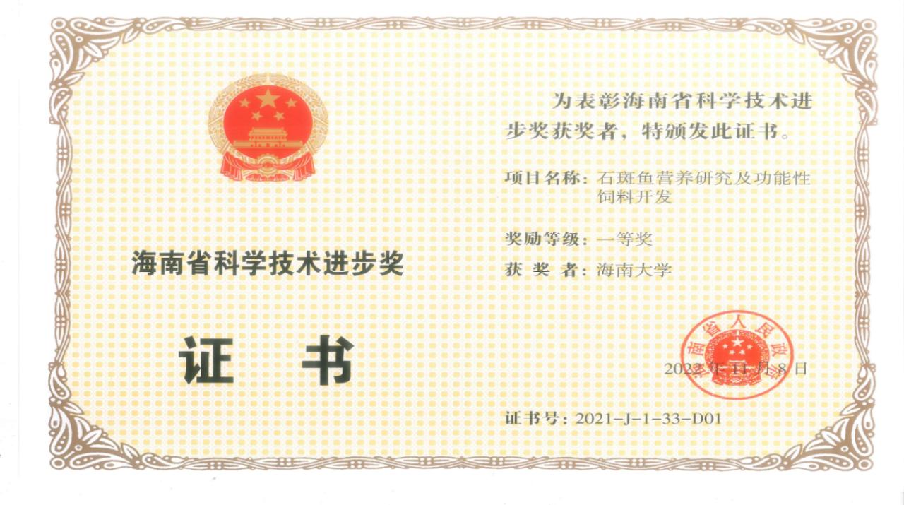斑为主要研究对象,深入开展石斑鱼营养研究及功能性饲料开发工作,建立了多种具有创造性的自主关键、核心技术,并进行了大规模的推广应用,促进了石斑鱼饲料业和养殖业健康可持续发展,产生了突出的经济和社会效益。