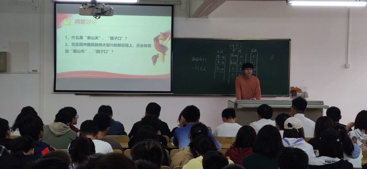 研讨会起始,党员同志们为各发展对象播放了“娄山关”、“腊子口”战役的相关影视作品,再现了红军长征路上与敌军激烈战斗、奋勇闯关夺隘的生动场景。并以此为切入点,引导各发展对象对如下两个问题进行“头脑风暴”——1、在实现中华民族伟大复兴的新征程上,还会有哪些“娄山关”,“腊子口”?2、你认为该如何去解决这些“娄山关”,“腊子口”?整个研讨过程,积极分子们表现出积极的参与意识,他们思维开阔、发言踊跃、整个教室气氛活跃。