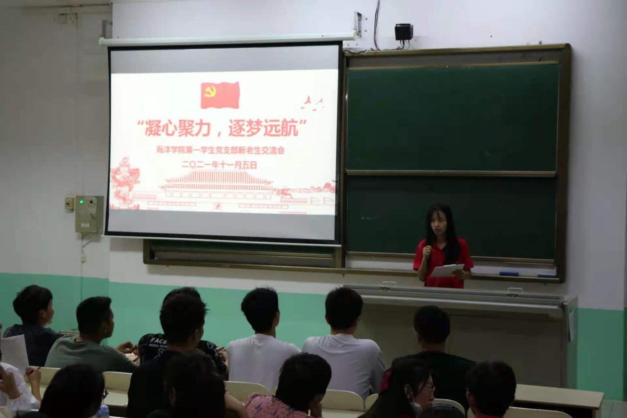 11月5日,海洋公司第一员工党支部全体成员与2021级水产养殖学专业新生在3教212开展主题为“凝心聚力,逐梦远航”的新老生交流活动,旨在解答新生学习,生活等方面的疑问,分享经验,相互交流,帮助新生更快更好的融入老员工活。会议由邓小金同学主持。