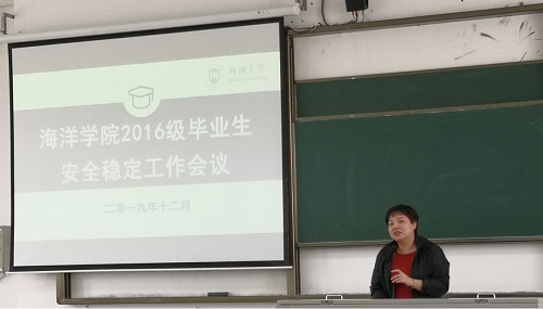 沈立岚老师首先对2016级同学的毕业实习作出具体要求,并对下学期毕业季安排作工作部署,最后强调了寒假假期安全问题。