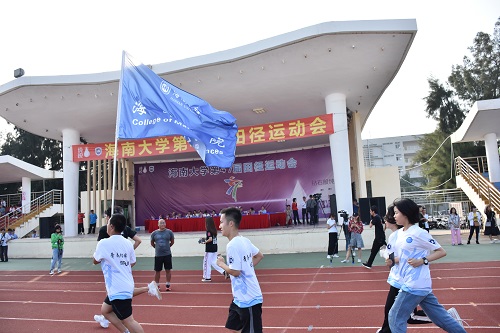 运动会最后一项跑旗活动中,团学全体人员都积极参加,怀着饱满的热情,接过院旗,进行一圈圈的接力,一同完成这个光荣的仪式。