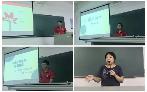 接下来,三位2016级水产系的优秀员工代表张波、颜梦珍、赵钶,分别就自身的学习、生活经历与大家进行分享。张波同学从积极向党组织靠拢、到个人的成长与发展,以及如何做一名合格的党员,向新生分享了他的入党及成长经历;颜梦珍同学以她的保研历程为核心,讲述了她的大学期间的学习经历和切身感受,为大家传授了很多学习上的“干货”。赵钶同学则从他三年在海洋公司团委员工会的员工干部工作经历出发,告诉大家要全面发展,从员工工作中历练自己,充实自己。三名员工代表的分享真实生动,内容满满,为新生们指明了学习方向,赢得了新生们的阵阵掌声。