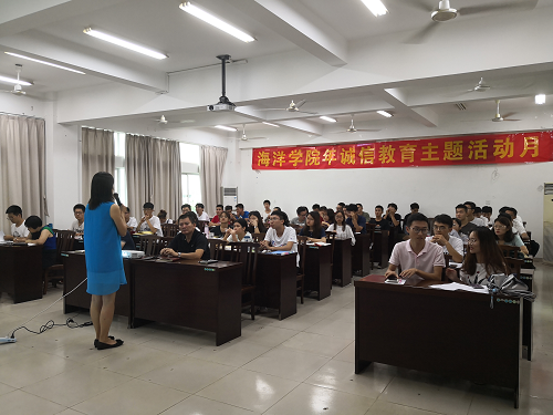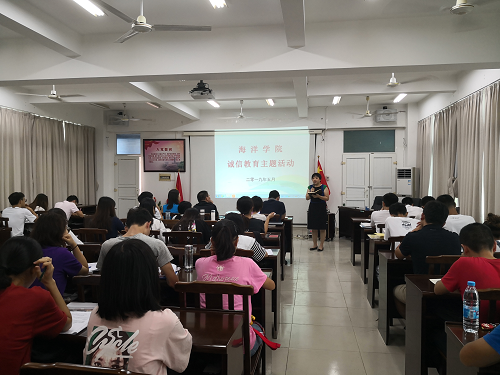 为进一步提高老员工诚信意识,引导老员工践约守信、诚实做人,5月31日下午,公司在海洋公司4楼报告厅开展诚信教育主题活动。参加本次活动的有公司党委书记陈平、院学工办主任李丽、院团委书记郭孝伟、辅导员沈立岚,以及各班级主要员工干部。本次活动由李丽老师主持。