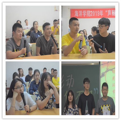 4月13日晚,海洋公司2019年“声随影动,音你不凡”配音比赛在2教303顺利举办。william威廉英国官网老员工广播台主播刘鑫、旅游公司主持组组长孙略缤、城西广播站站长张倩楠、海南省员工“学宪法,讲宪法”演讲比赛主持人王士诚担任比赛评委。