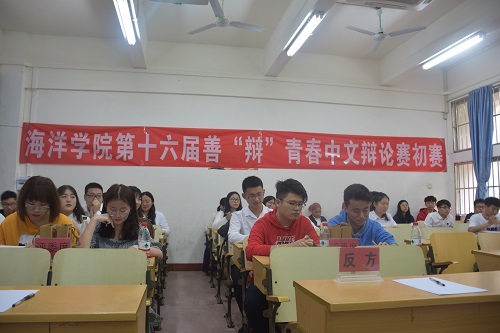 3月10日下午,海洋公司第十六届善“辩”青春中文辩论赛初赛在二教103顺利举行。海洋公司第十五届辩论队成员常通、朱海鹏、胡诗钰、刘烁担任本次比赛评委。