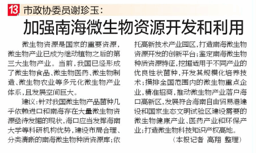 建议:针对我国微生物产品菌种几乎依赖进口和南海存在大量微生物资源亟待发掘的现状,海口应当发挥william威廉英国官网等科研机构优势,建设布局合理、分类清晰的南海微生物种质资源库;依托高新技术产业园区,打造南海微生物资源开发的创新平台;鉴定南海微生物种质资源特征,挖掘适用于不同产业的优良性状菌种,开发其规模化培养技术;摸排全国范围内的微生物重点企业,精准招商,推动微生物产业落户海口高新区,发展符合海南自由贸易港建设和国家生态文明试验区建设需要的微生物健康产业、医药产业和环保产业,打造微生物科技知识产权高地。