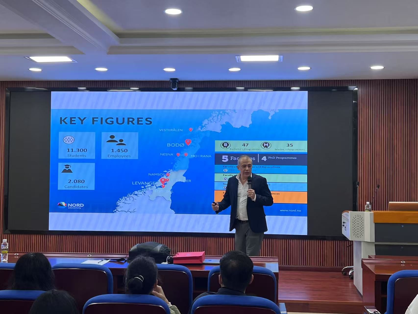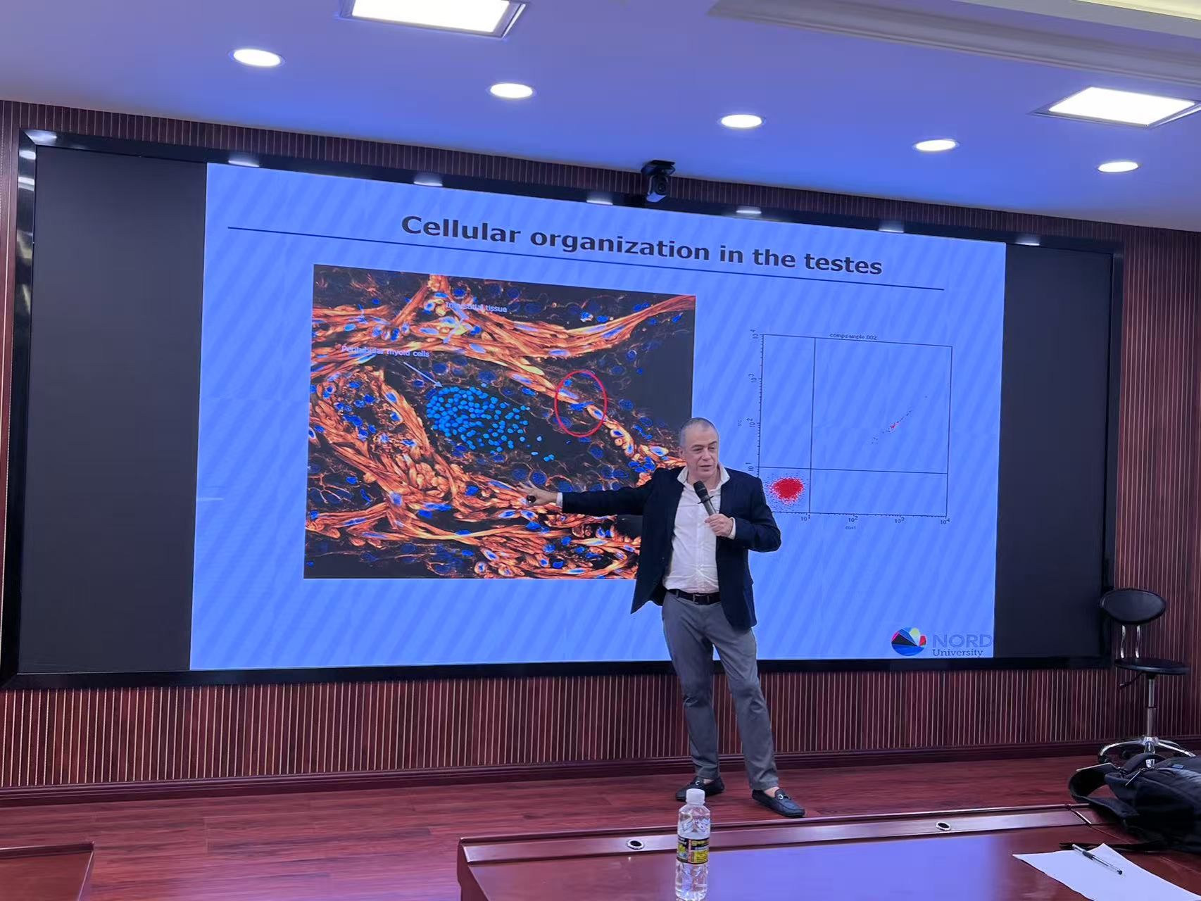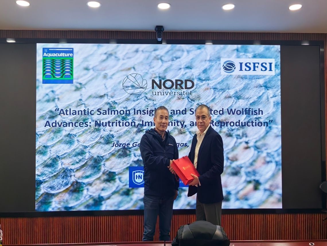 在报告中,Dr. Jorge重点阐述了大西洋鲑(Salmo salar)与狼鳚(Anarrichas minor)的生物学特点,尤其是它们的基本特性、营养干预措施以及免疫与生殖系统的动态变化。Dr. Jorge详细介绍了大西洋鲑鱼在养殖技术、营养价值、市场前景等领域普遍存在的问题,通过改进养殖策略、优化饲料配方、准确把握生殖周期等手段为挪威成功养殖大西洋鲑鱼这一珍贵物种提供了坚实的理论与实践支撑。而对于狼鳚的研究主要是通过对狼鳚血液和睾丸生化及分子特征的深入研究,特别是在性成熟障碍、繁殖季节的同步性等关键问题的突破,为健康管理领域提供重要理论支撑。这些发现不仅揭示了狼鳚作为水产养殖多样化可行候选物种的巨大潜力,也完美契合了当前对可持续且物种丰富的生产系统日益增长的迫切需求。Dr. Jorge的报告进一步加深了我们对大西洋鲑鱼与狼鳚这两种重要水产养殖品种的理解,为我们打开了全新的视角。他的分享不仅为我们全面展示了他在推动可持续水产养殖实践方面所取得的显著成就以及挪威在水产养殖创新领域所面临的机遇与挑战,也为我们未来的研究与实践提供了宝贵的启示与方向。