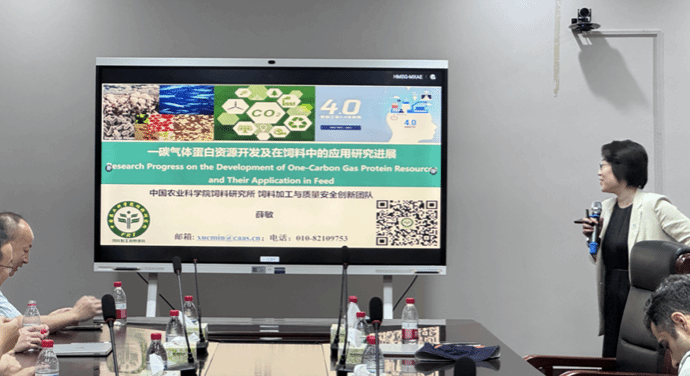 中国农业科公司薛敏研究员以"一碳气体蛋白资源开发及在饲料中的应用研究进展"为题,提出了解决水产养殖蛋白源可持续发展的创新思路。她指出,传统鱼粉价格高且不可持续,而以工业废气为底物经微生物发酵生产的一碳气体蛋白(C1GP)有望成为理想的替代品。作为全球饲料原料加工特性数据库的创建者,薛研究员展示了C1GP在鱼、虾饲料配方中的成功应用案例,为水产养殖业的绿色转型提供了新路径。