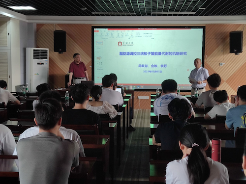周歧存教授是中国水产学会水产动物营养与饲料委员会委员、国际著名水产动物营养学家、农业部现代农业产业体系“海水蟹营养需求与饲料”岗位科学家。主持国家基金项目面上项目3项,参与国家重点研发计划、国家自然科学基金、国家“863”项目、国家支撑计划、国家(农业部和海洋局)公益性行业专项等省部级课题20多项。周歧存教授报告题目为:脂肪源调控三疣梭子蟹能量代谢的机制研究。就实验室多年来在脂肪源调控三疣梭子蟹能量代谢的相关机制研究所取得的系列成果与公司师生进行了分享和交流,并对海水蟹产业现状、营养研究与饲料开发前景进行了评估和展望。