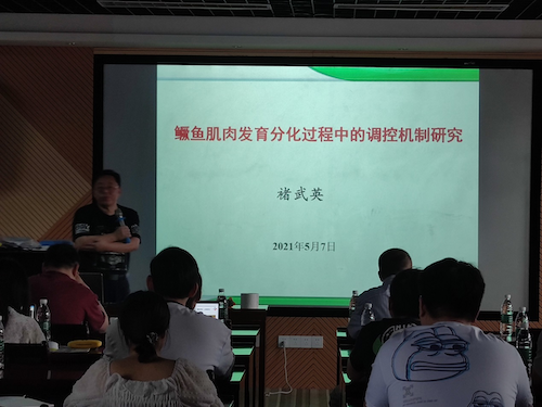 褚武英教授是湖南省“双一流”、“生物学”特色应用学科带头人,主要科研方向为水产动物优良优质性状形成机制及其营养调控,先后主持国家自然科学基金项目4项,参与国家973项目、国家自然科学基金重点项目3项,在《Journal of Nutritional Biochemistry》杂志发表进入ESI生物科学领域高被引论文1篇。褚武英教授报告题目为:鳜鱼肌肉发育分化过程中的调控机制研究。报告详细阐述了鳜鱼肌肉组织在发育、分化过程中,生物钟基因与支链氨基酸代谢关键酶基因的调控功能及关联性分析。并结合营养学研究提出了鱼类养殖过程中如何改善肌肉品质相关问题的解决策略。