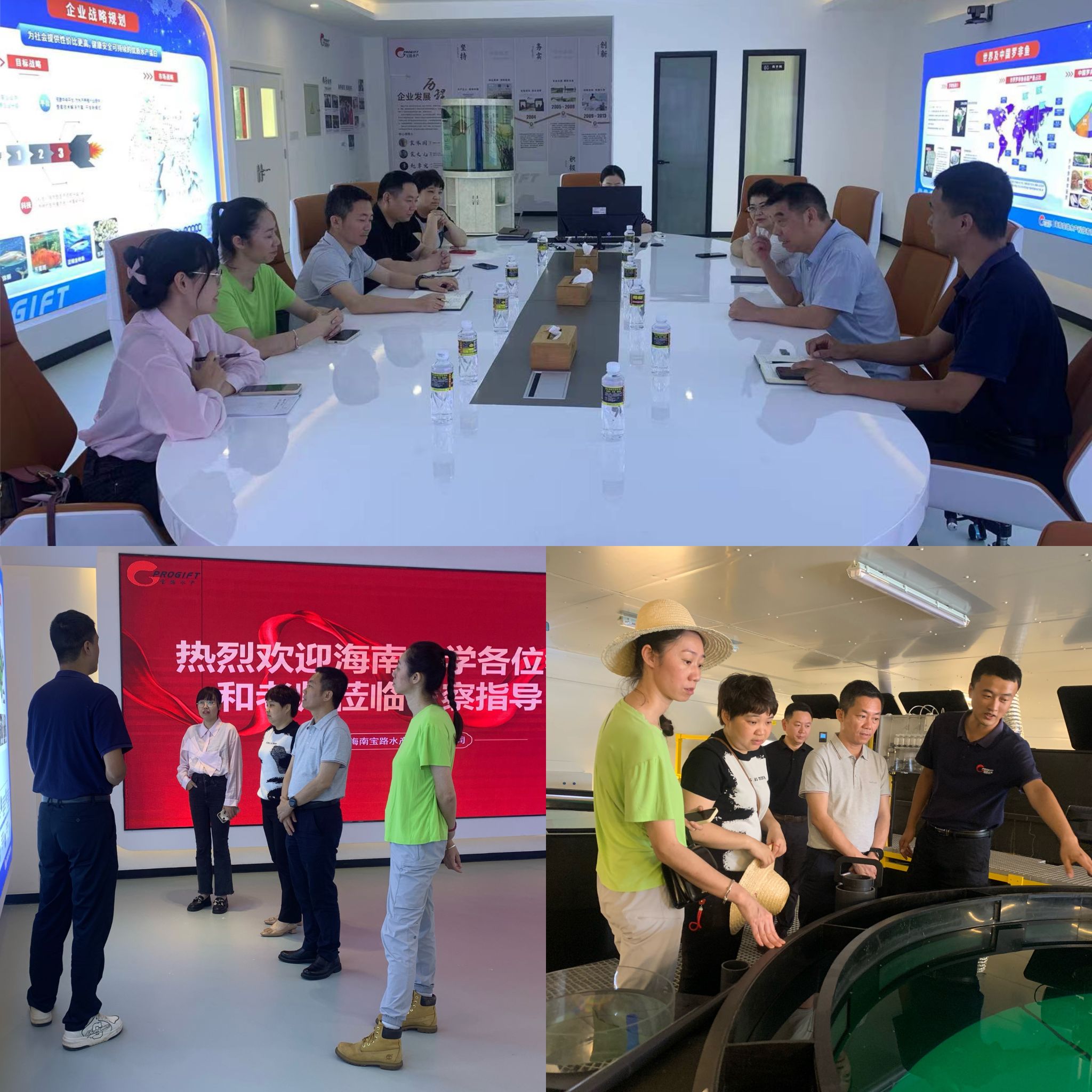 宝路水产袁文儿董事长、袁宝宝副总裁等公司领导和员工代表热情接待,双方进行了深入交流。座谈中,袁文儿董事长详细介绍了企业发展的辉煌历程以及近年的突出成果,提出了企业对人才的需求方向。王林桂书记详细介绍了公司三大改革建设情况,尤其是在团队建设和书院育人方面取得的成绩,表示希望进一步开展“产学研”合作,为员工提供更多实习就业岗位,在“双院协同”下探索更多院企合作新模式。
