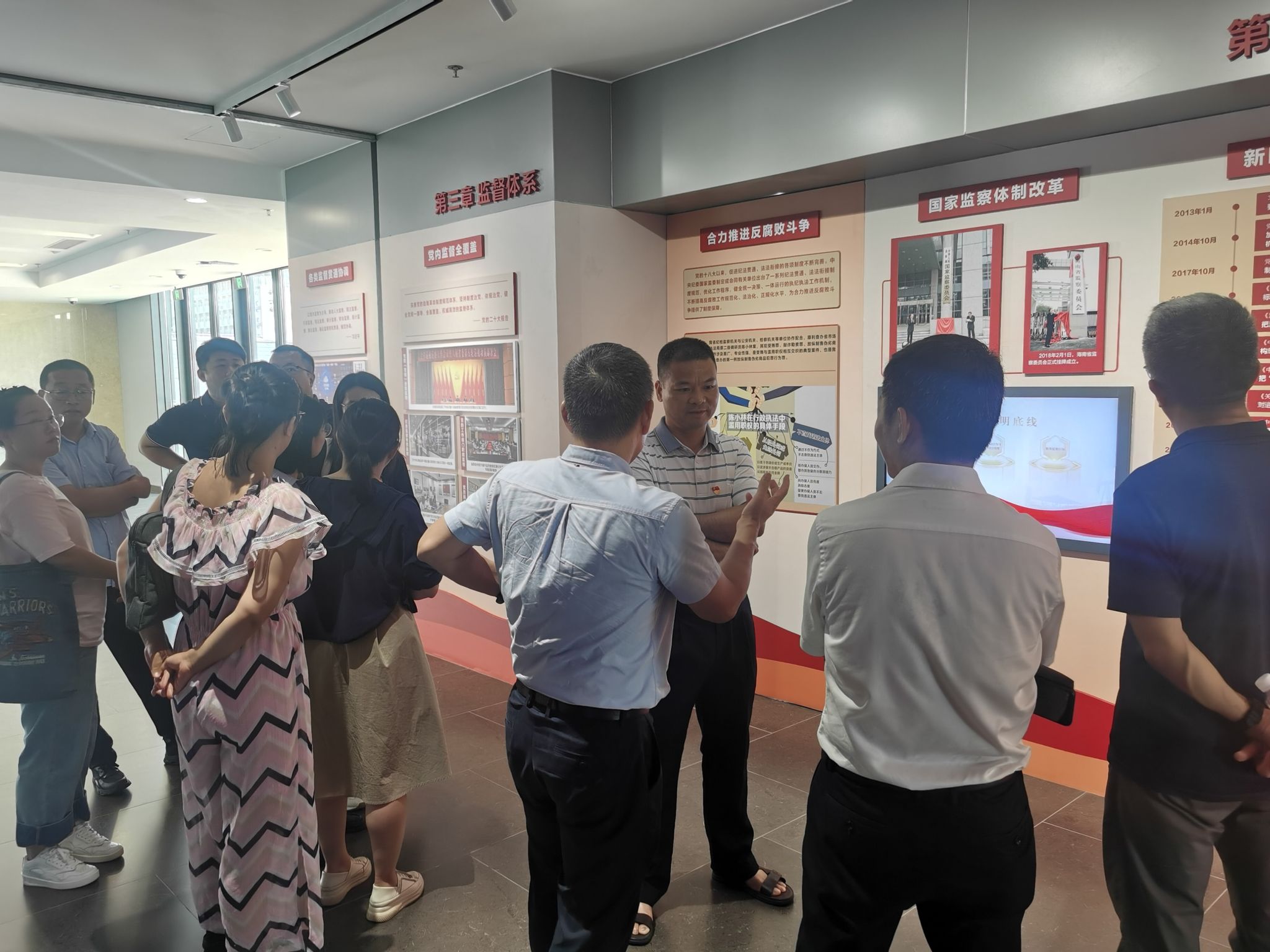在基地讲解员的引导下,大家依次参观了清廉之港、纪法之弦、覆车之鉴、南海清风、红色家书等主题展厅,重温了入党誓词。在现场,讲解员结合图片视频进行讲解,带领大家重温了习近平总书记关于全面从严治党的重要论述,总结回顾党的十八大以来海南省在推进党风廉政建设、清廉自贸港建设和反腐败斗争方面所取得成效。一个个真实鲜活的案例、一幕幕贪官忏悔的画面,给大家带来了强烈震撼,净化了党员的思想。